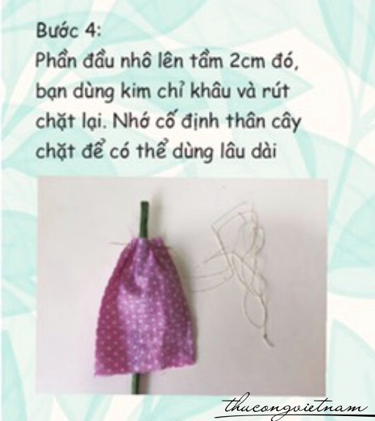 Bước 5 bạn chỉ cần lộn mặt phải lên hướng cành cây phần chừa 2cm ở bước trước đó