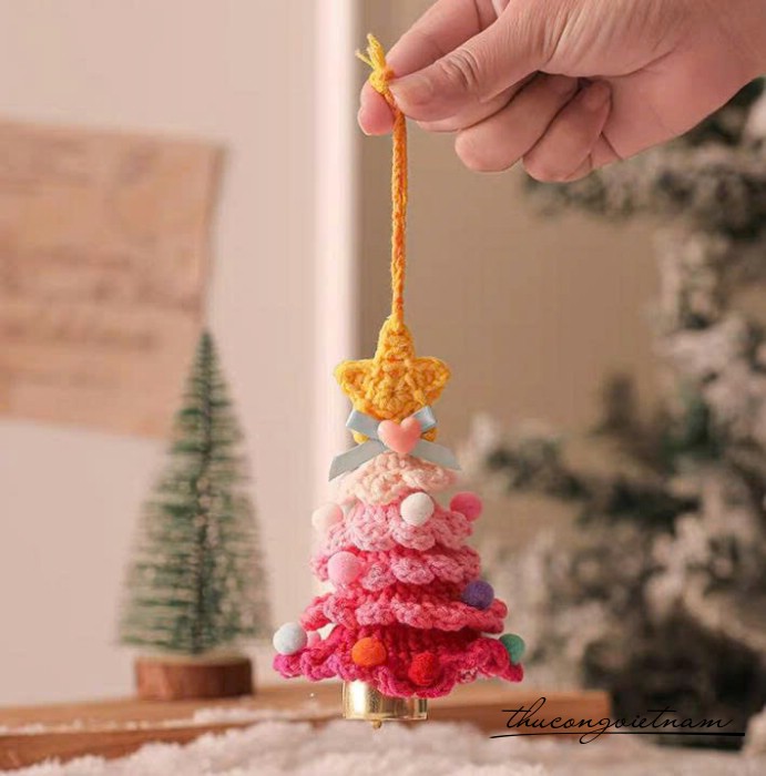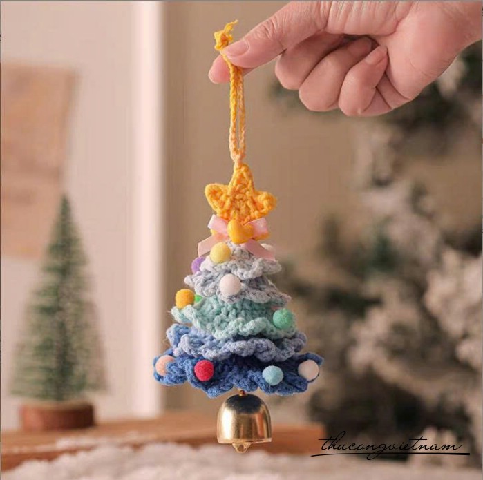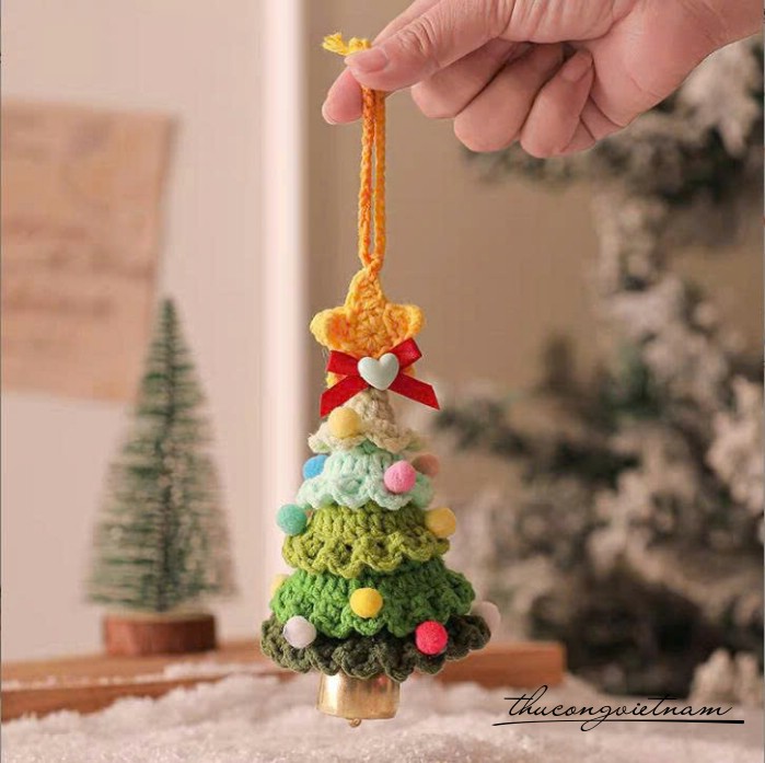 Cây thông len kèm chuông 14*9cm (nhiều màu)