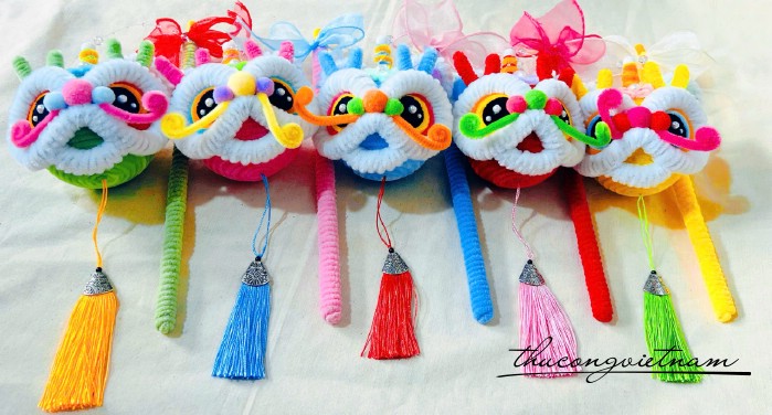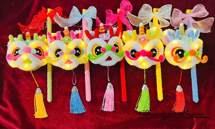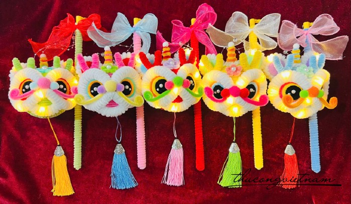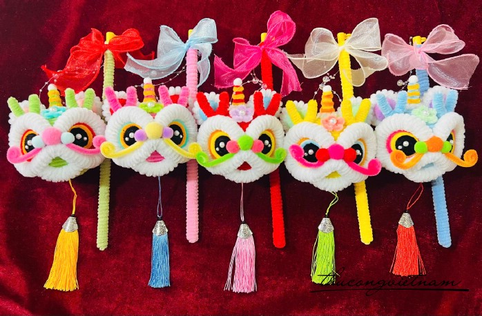 Đầu lân kẽm nhung kèm tay cầm ( nhiều màu)