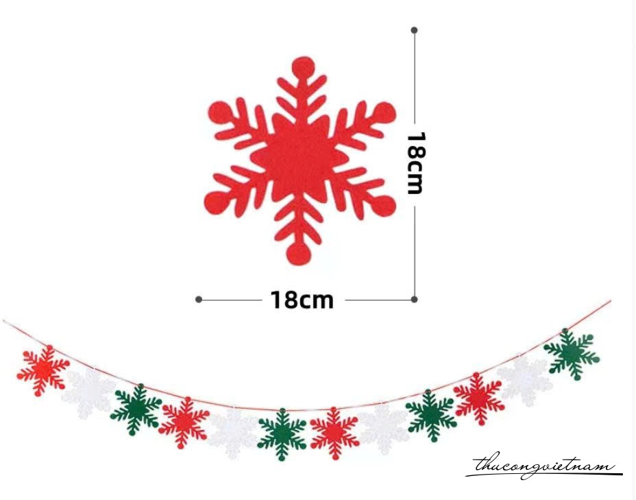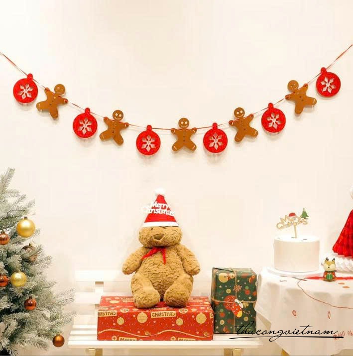 Dây trang trí Giáng Sinh làm từ nỉ dày, thiết kế với nhiều họa tiết đáng yêu như ông già Noel, tuần lộc, cây thông, người tuyết... giúp tạo không gian rực rỡ và tràn đầy không khí lễ hội. Sản phẩm thích hợp treo trang trí tường, cửa ra vào, quán cà phê, văn phòng, lớp học hoặc cây thông Noel.