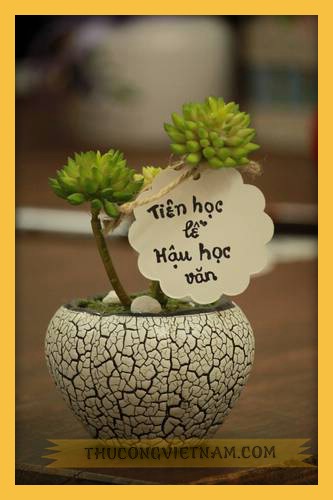Sản phẩm hoa được làm bằng chất liệu nhựa, mang màu xanh non tươi tắn và đá, sỏi cũng được sử dụng để tăng thêm vẻ đẹp. Mỗi sản phẩm đều kèm theo lời chúc, cũng như là món quà Vinacraft muốn thay các bạn GỬI YÊU THƯƠNG TẶNG THẦY CÔ