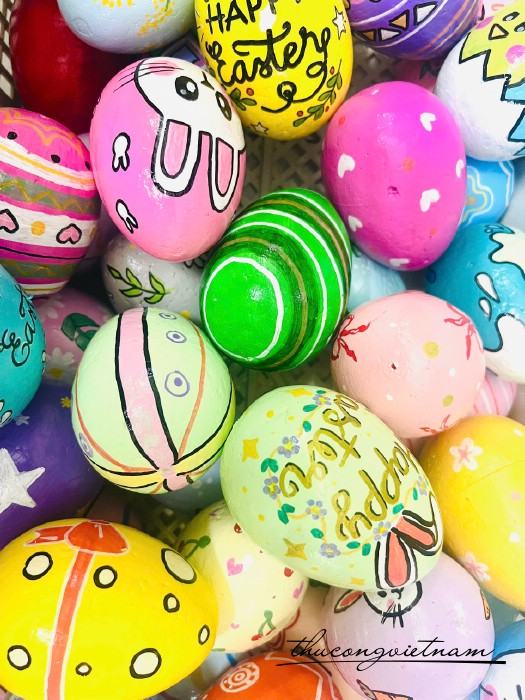 Khác với những sản phẩm công nghiệp, trứng phục sinh tại Vinacraft được tạo hình hoàn toàn bằng tay từ vẽ đến trang trí. Từng nét cọ, từng chi tiết nhỏ đều được đội ngũ nhân sự chăm chút tỉ mỉ, để mỗi quả trứng không chỉ đẹp mà còn mang một cảm xúc riêng biệt.