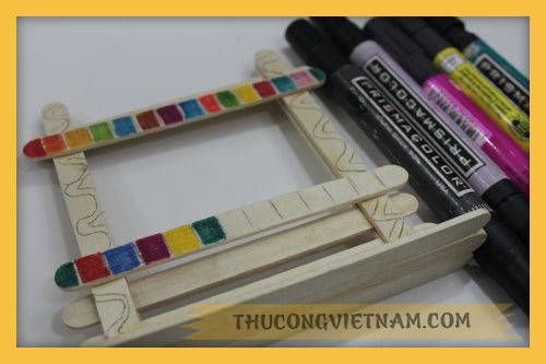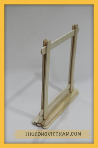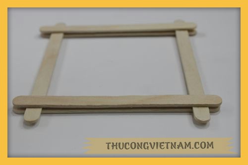 Giờ thì bạn ráp que thành hình vuông. Sau đó dán chồng thêm 2 que lên trên