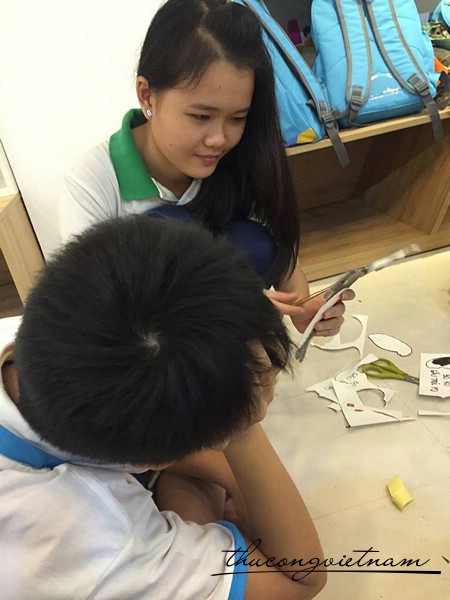 Bé Khéo Tay rất hứng khởi. Bài dạy cũng là một trong những sản phẩm mà Bé Khéo Tay từng hướng dẫn qua. Nhưng đây là nhóm các bé mới nên ai cũng thích thú và tham gia.