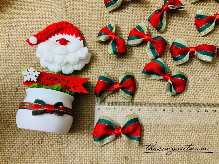 Màu sắc nổi bật như đỏ, xanh, vàng, bạc mang đậm tinh thần lễ hội. Nơ nhỏ gọn, dễ gắn, giúp không gian thêm sinh động và bắt mắt trong mùa Giáng Sinh.