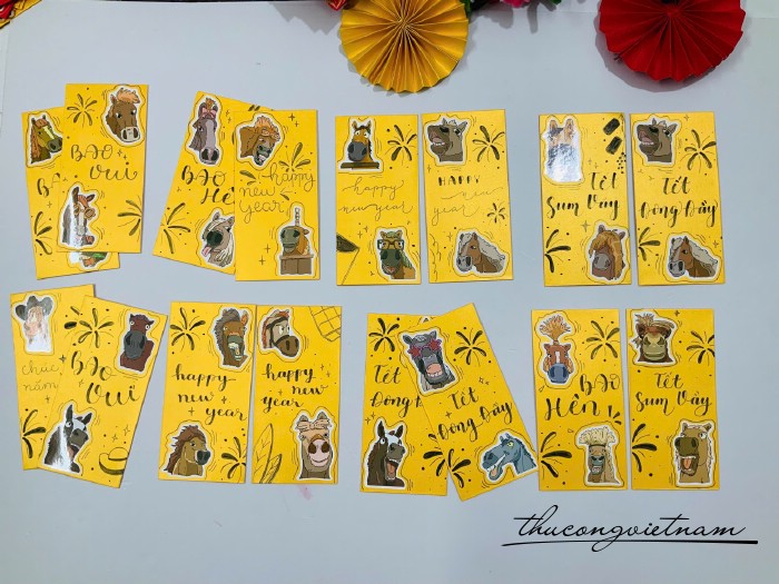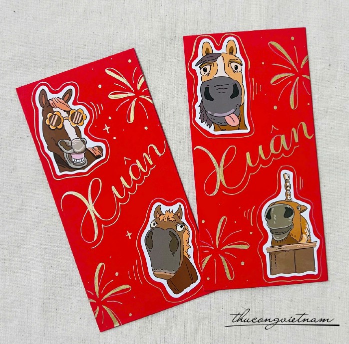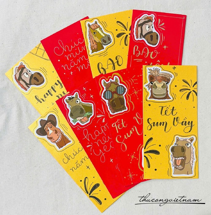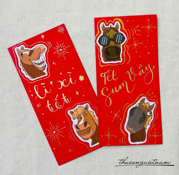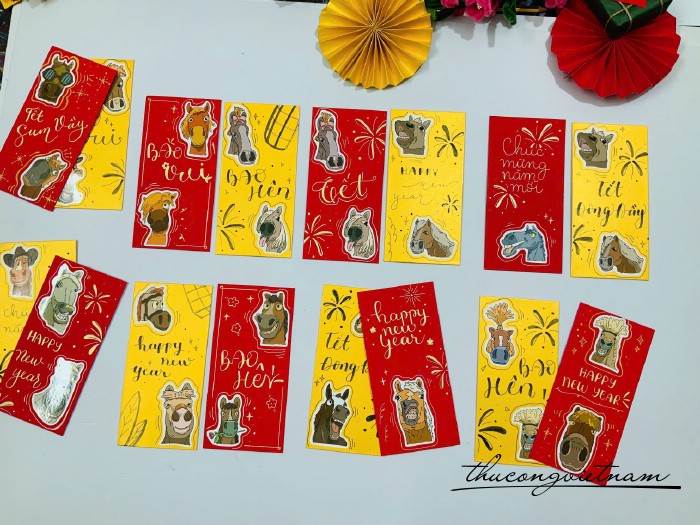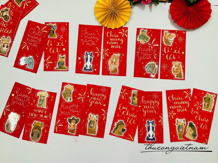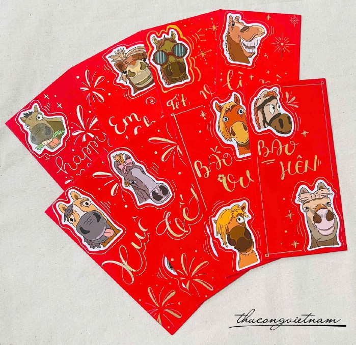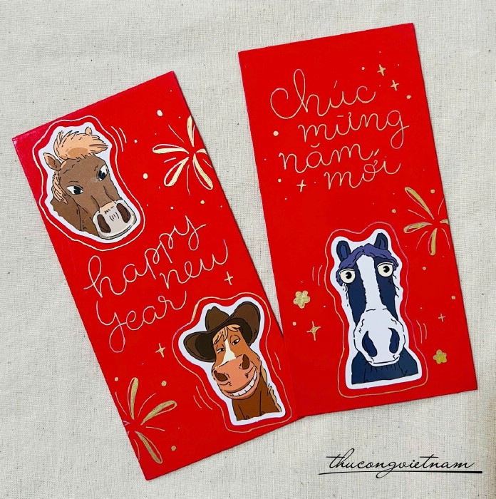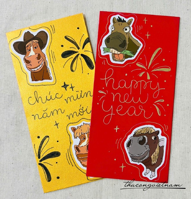 Set 2 bao lì xì handmade Bính Ngọ viết tay