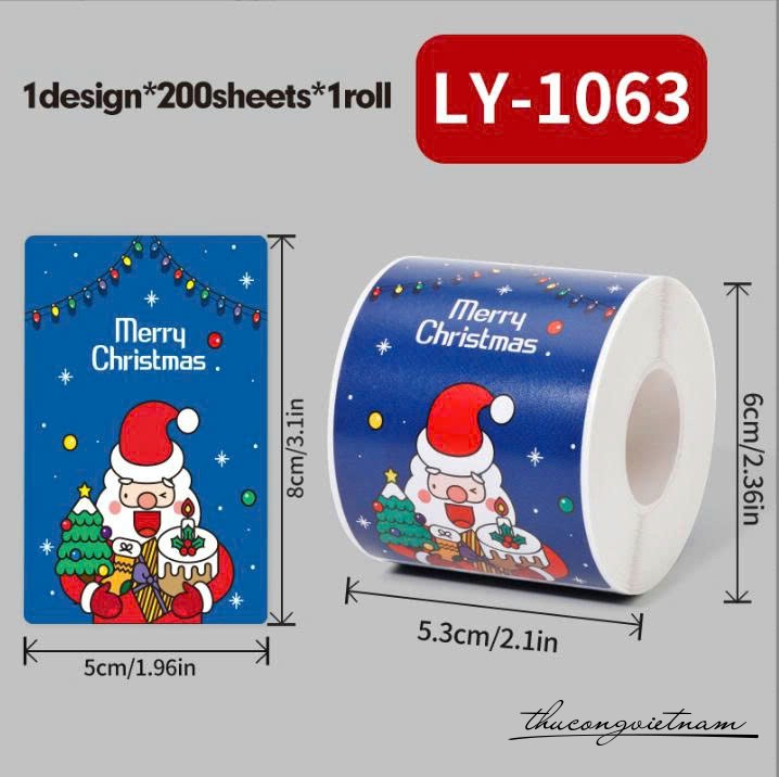 Sticker cuộn dùng để trang trí hộp quà, túi quà, thiệp và sản phẩm handmade, giúp tăng độ thẩm mỹ và điểm nhấn cho quà tặng. Mỗi cuộn gồm 200 tem in sắc nét, dễ bóc – dễ dán, phù hợp cho mùa Giáng Sinh hoặc trang trí hằng ngày.