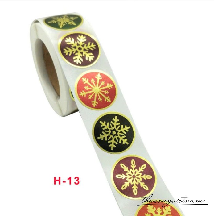 Sticker tròn Giáng Sinh nhũ ánh kim (500 tem) - Bông tuyết mix màu