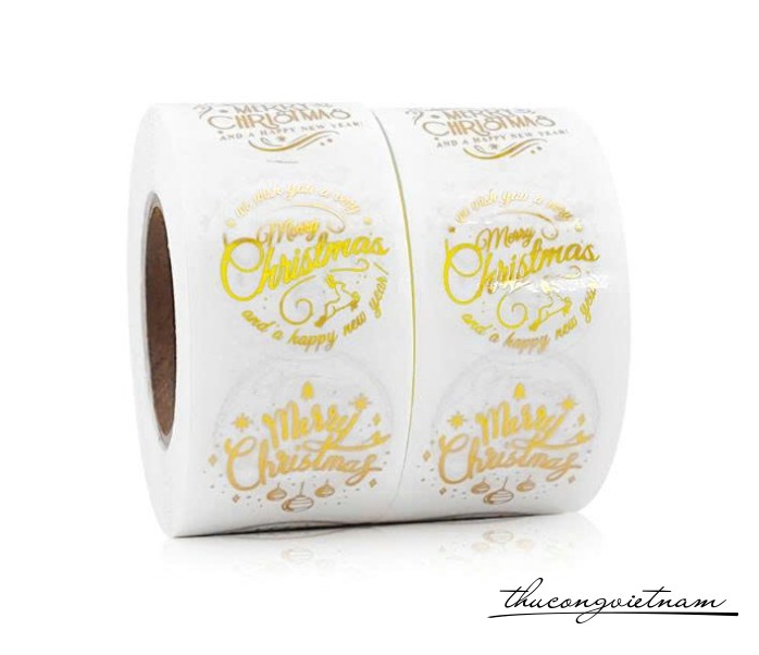 Sticker tròn Giáng Sinh nhũ ánh kim (500 tem) - Merry Christmas