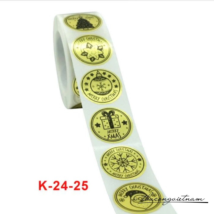 Sticker tròn Giáng Sinh nhũ ánh kim (500 tem) - Xmas