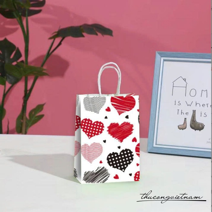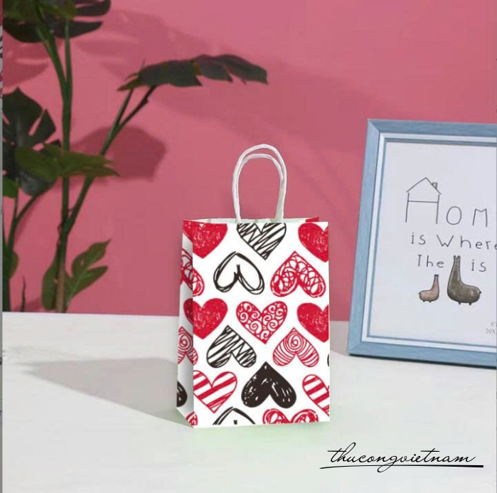 Túi giấy kraft họa tiết trái tim 15*8*21cm (nhiều mẫu)