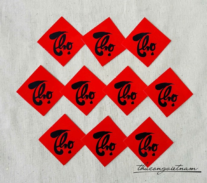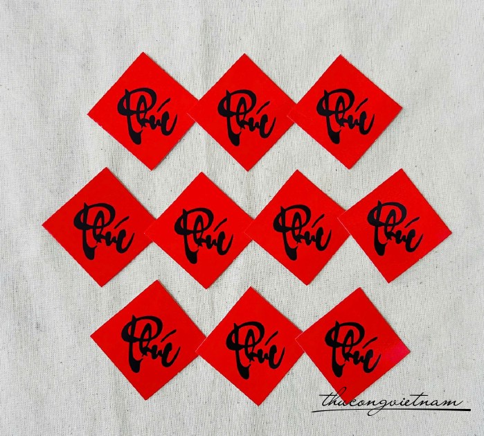 Chữ giấy thư pháp nền đỏ 4cm (10 cái) – Trang trí Tết truyền thống