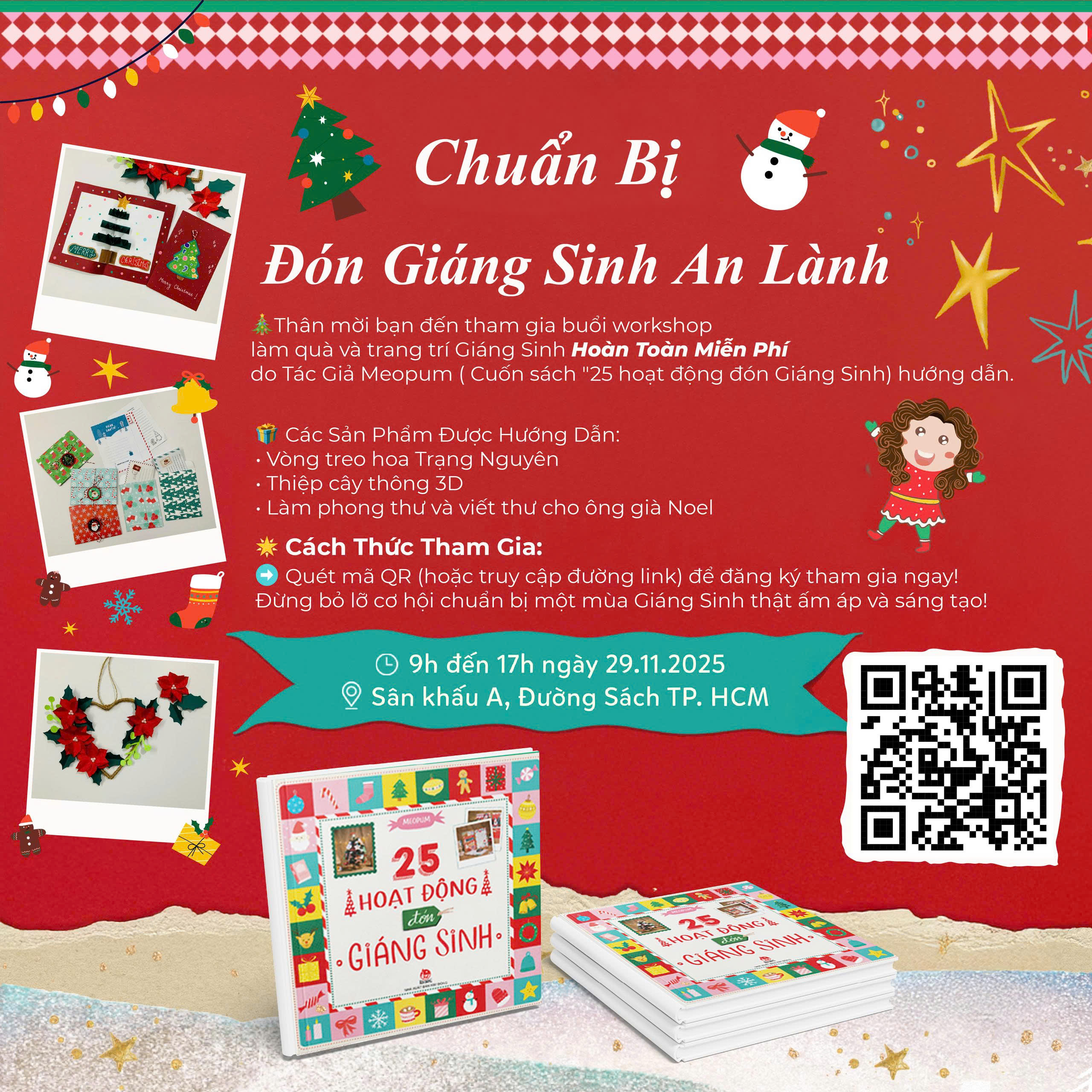 Nếu bạn yêu mùa lễ hội cuối năm, thích làm đồ xinh xinh và muốn trải nghiệm những hoạt động siêu dễ thương trong sách, thì nhớ đăng ký tham gia sự kiện ra mắt sách ngày 29/11/2025 nha.