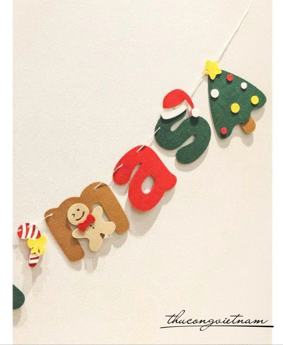 Dây chữ nỉ Merry Xmas – Mẫu Santa & Cây thông
