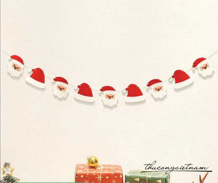 Dây trang trí Giáng Sinh làm từ nỉ dày, thiết kế với nhiều họa tiết đáng yêu như ông già Noel, tuần lộc, cây thông, người tuyết... giúp tạo không gian rực rỡ và tràn đầy không khí lễ hội. Sản phẩm thích hợp treo trang trí tường, cửa ra vào, quán cà phê, văn phòng, lớp học hoặc cây thông Noel.