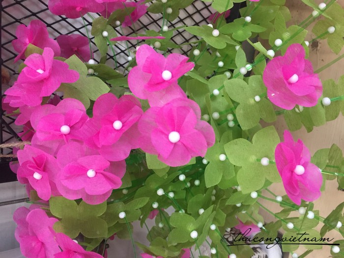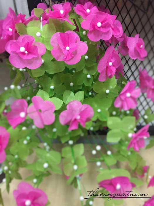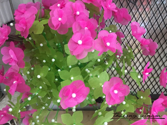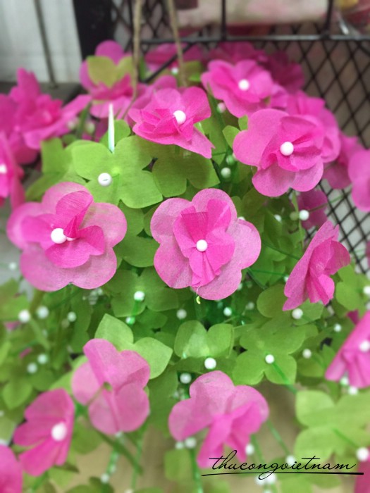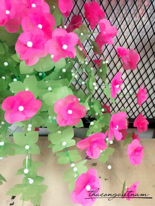 Chậu hoa giấy được làm từ giấy lụa, cái này đúng là hoa giấy luôn á :)))