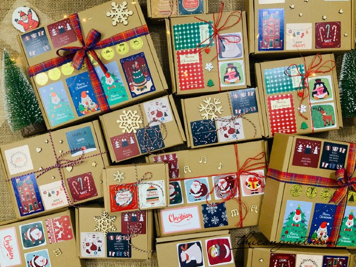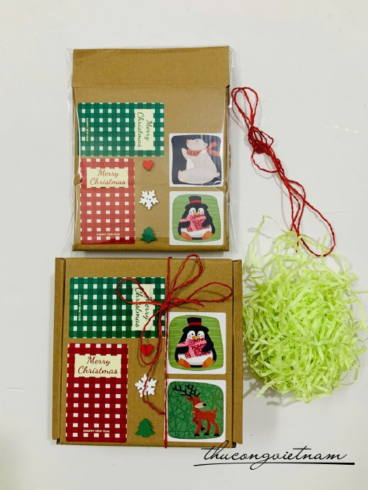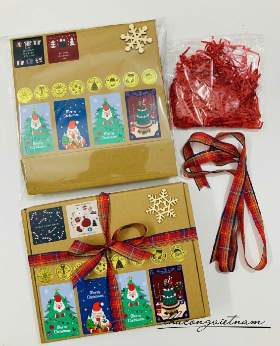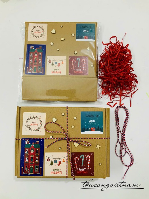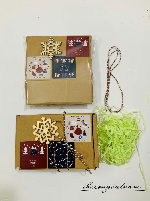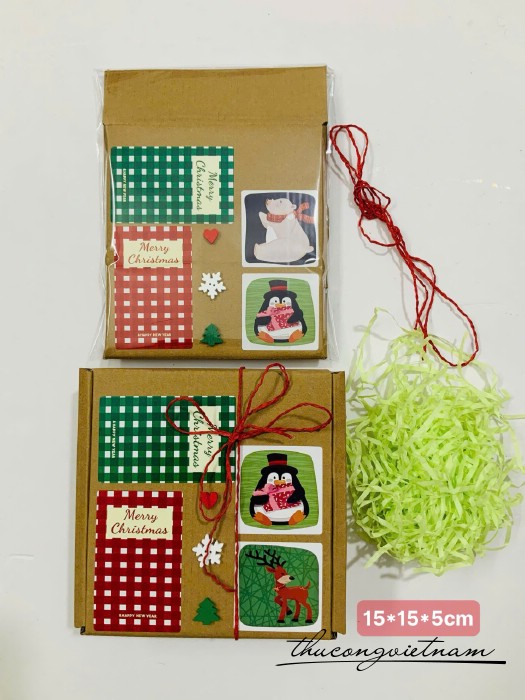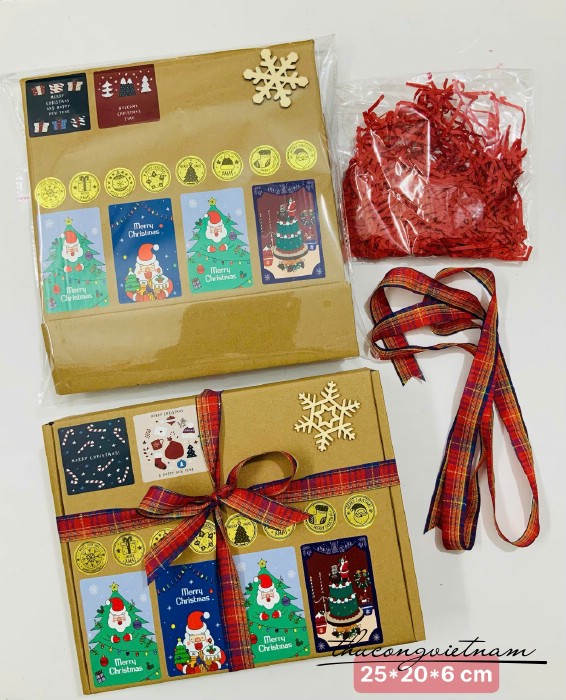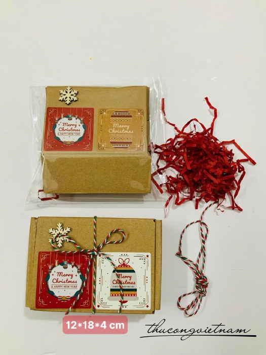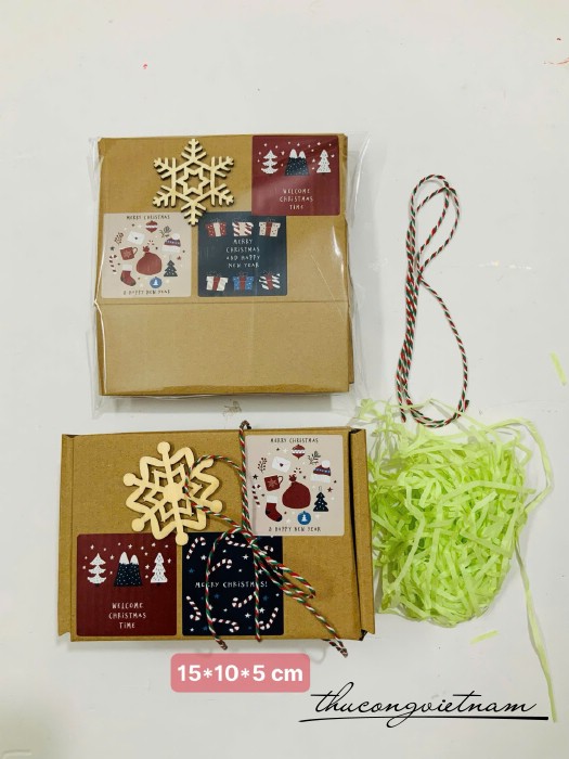Hộp Giấy kraft nắp gài nhiều kích thước gói sẵn phong cách Giáng Sinh