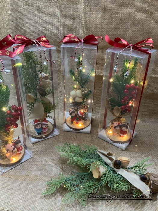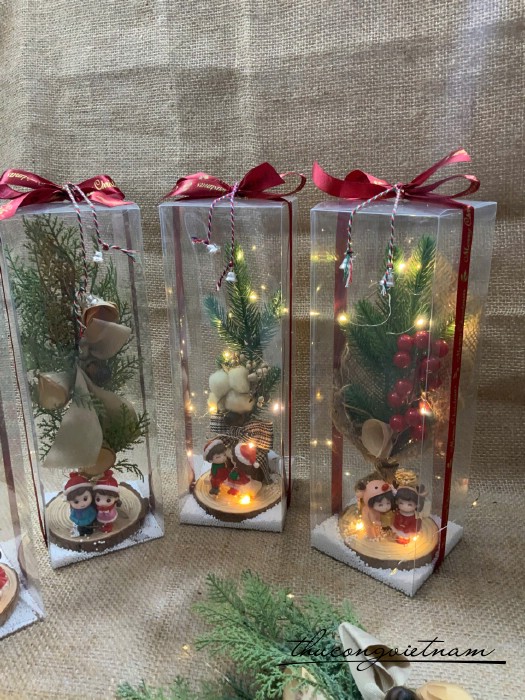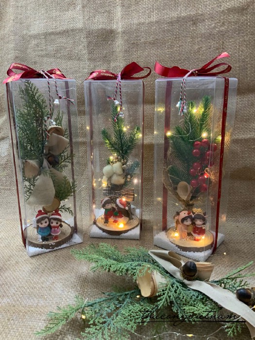 Hộp quà Giáng sinh mô hình 2 bé 10x10x30cm