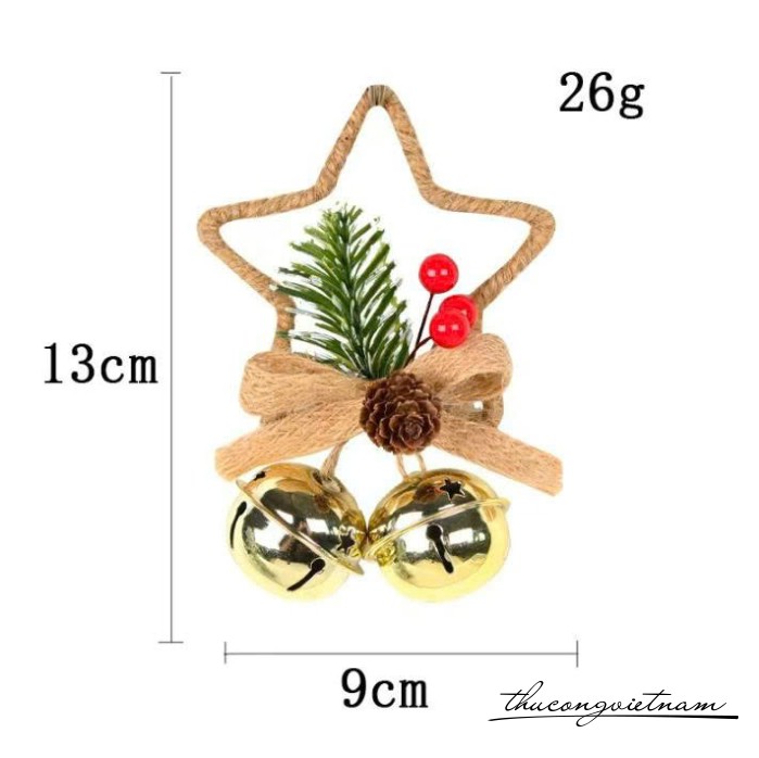 Ngôi sao treo kèm 2 chuông Giáng Sinh (nhiều màu)