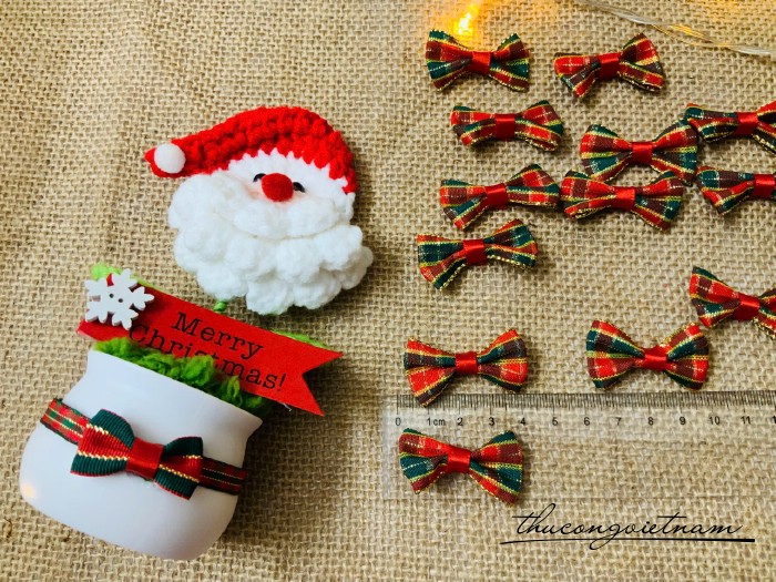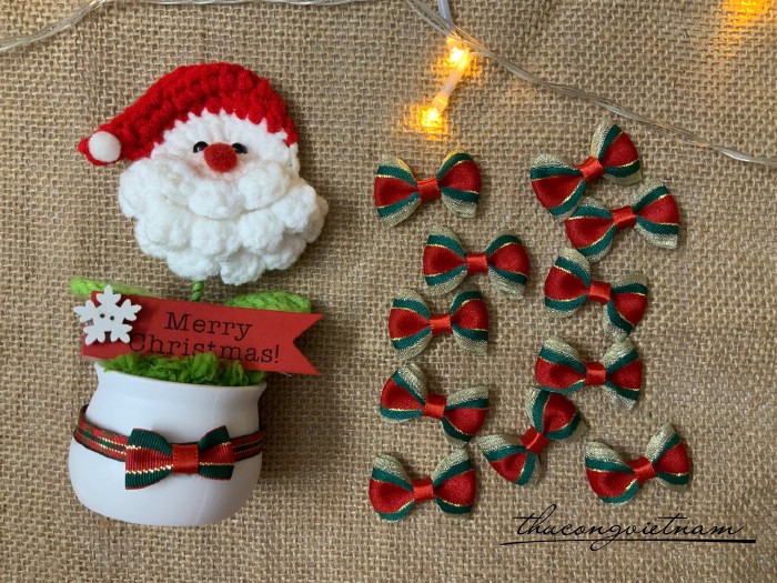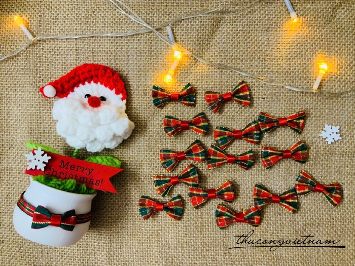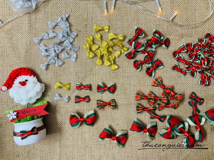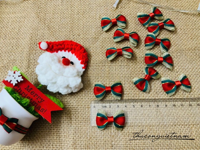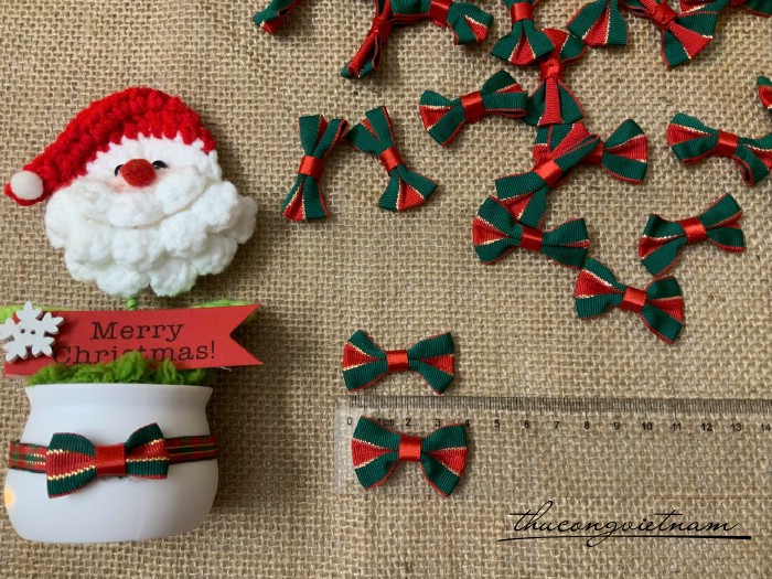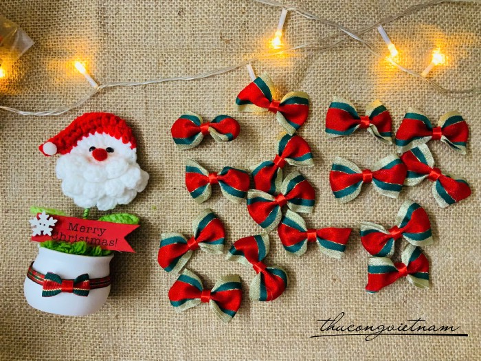 Màu sắc nổi bật như đỏ, xanh, vàng, bạc mang đậm tinh thần lễ hội. Nơ nhỏ gọn, dễ gắn, giúp không gian thêm sinh động và bắt mắt trong mùa Giáng Sinh.