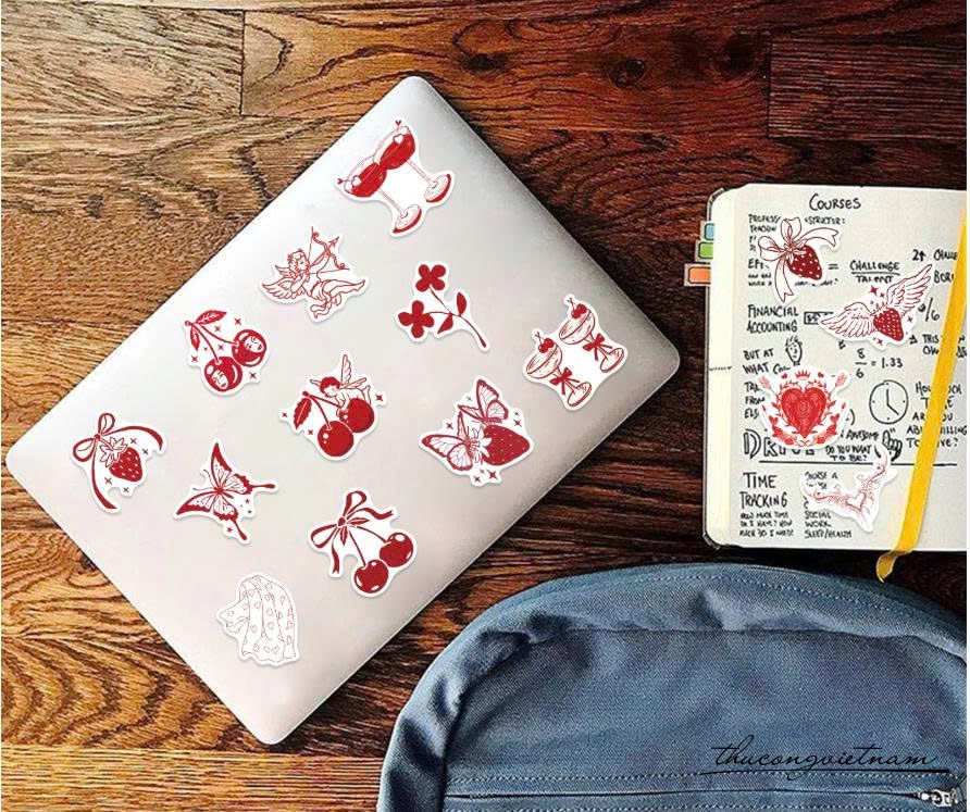 Sticker dùng để trang trí và cá nhân hóa đồ dùng hằng ngày, giúp mọi vật quen thuộc trở nên sinh động và dễ thương hơn. Có thể dán lên sổ tay, bullet journal, planner, laptop, nón bảo hiểm, bình nước, hộp bút, vali…