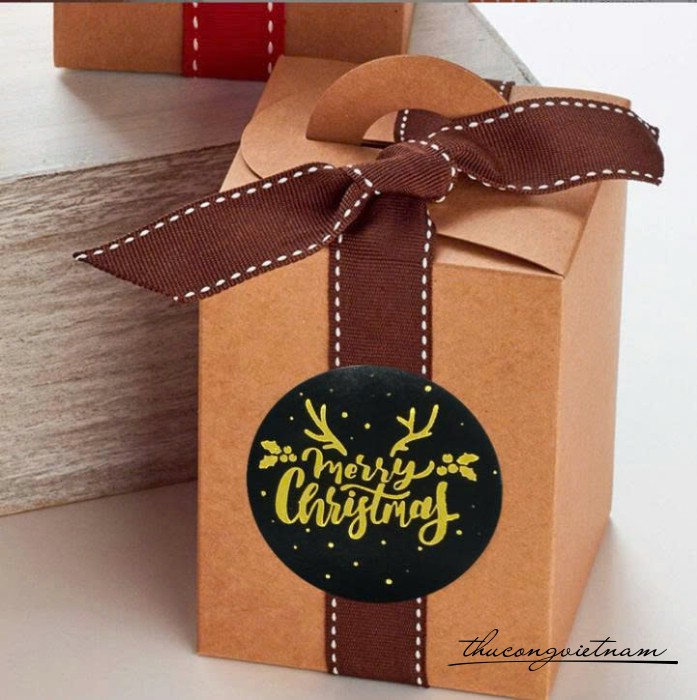 Sticker tròn Giáng Sinh nhũ ánh kim (500 tem) - Merry Christmas đen