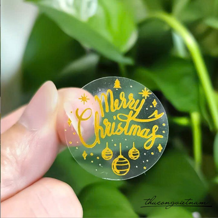 Sticker tròn Giáng Sinh nhũ ánh kim (500 tem) - Merry Christmas