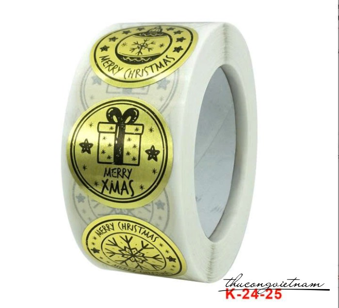 Sticker tròn Giáng Sinh nhũ ánh kim (500 tem) - Xmas