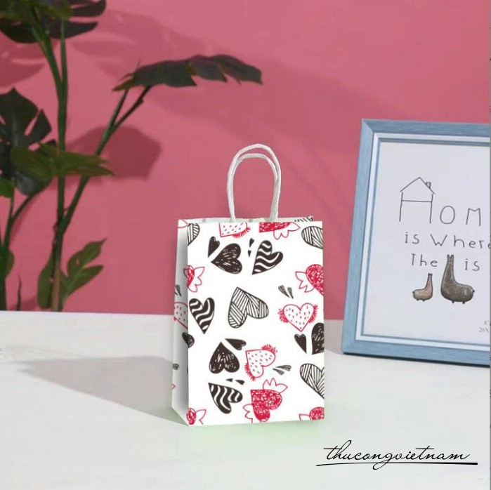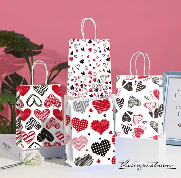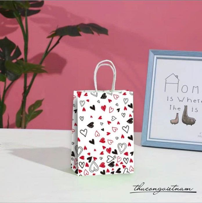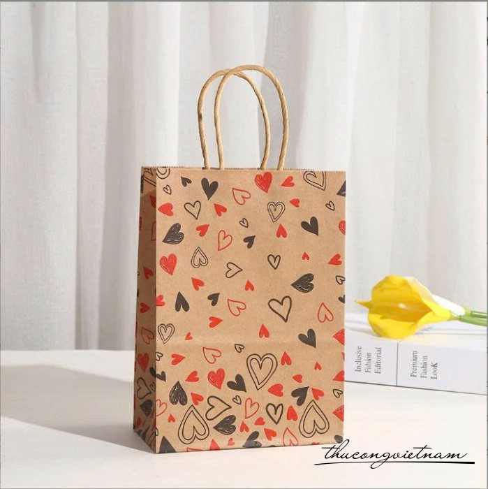 Túi giấy kraft họa tiết trái tim